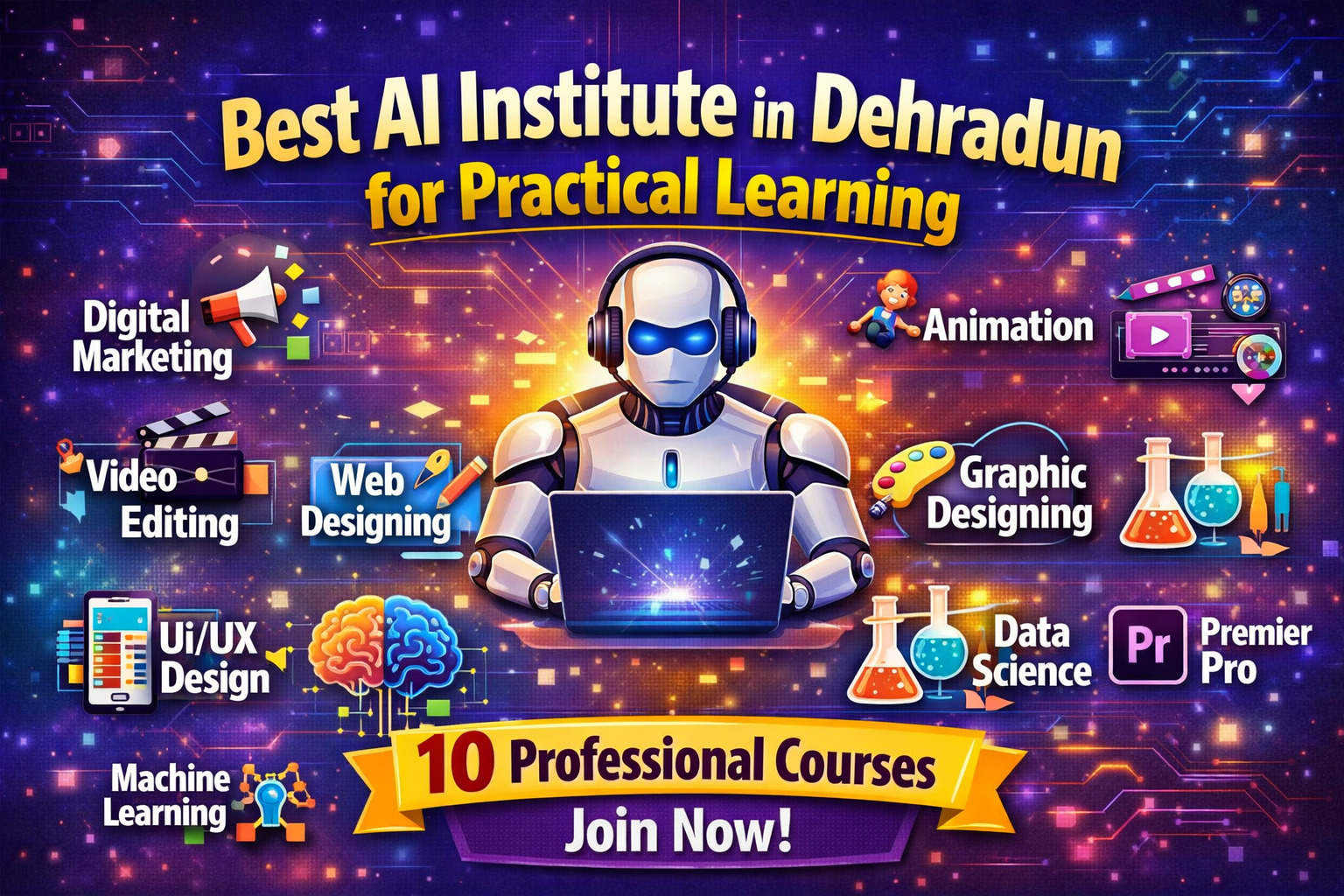Choosing the best AI institute in Dehradun for practical learning can be the first step toward a successful career. With the growing demand for AI professionals, it is important to gain hands-on experience and industry skills. Courses such as Digital Marketing, Python, Animation, Video Editing, Web Designing, UI/UX Design, Machine Learning, Graphic Designing, Data Analysis, and Premiere Pro help students build a strong foundation for future success. By selecting the right institute and focusing on practical training, students can unlock excellent career opportunities in the digital and technology-driven world.
