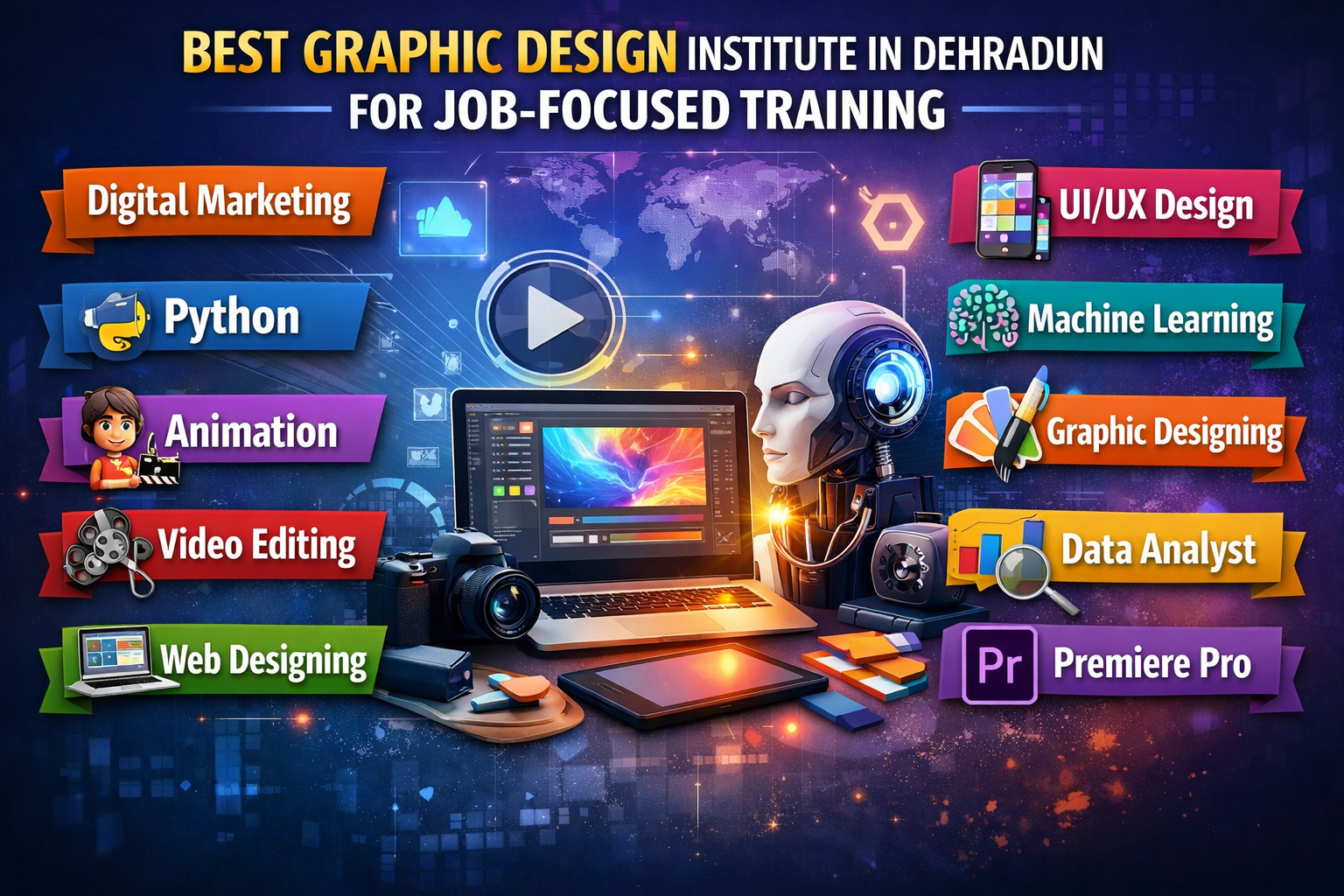 Choosing the best graphic design institute in Dehradun for job-focused training can help students build a successful and creative career. With the growing demand for visual content, skilled designers are needed in almost every industry. Courses like Digital Marketing, Python, Animation, Video Editing, Web Designing, UI/UX Design, Machine Learning, Graphic Designing, Data Analysis, and Premiere Pro provide a strong foundation for future growth. By focusing on practical learning and building a strong portfolio, students can achieve excellent career opportunities in the digital and design industry.