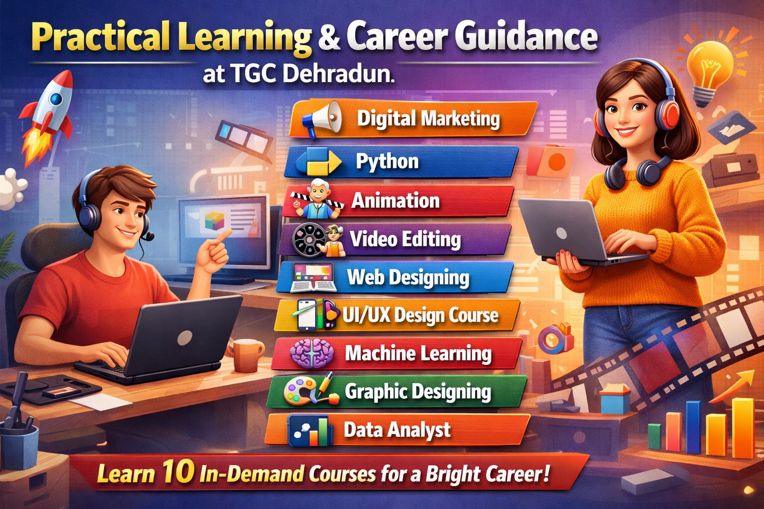 Building a successful career requires more than theoretical knowledge—it demands practical skills and real-world experience. TGC Dehradun provides the right platform with expert training, hands-on projects, and career guidance to help students achieve their goals. By enrolling in these trending courses, you can create a strong foundation and secure a bright future in today’s competitive job market.