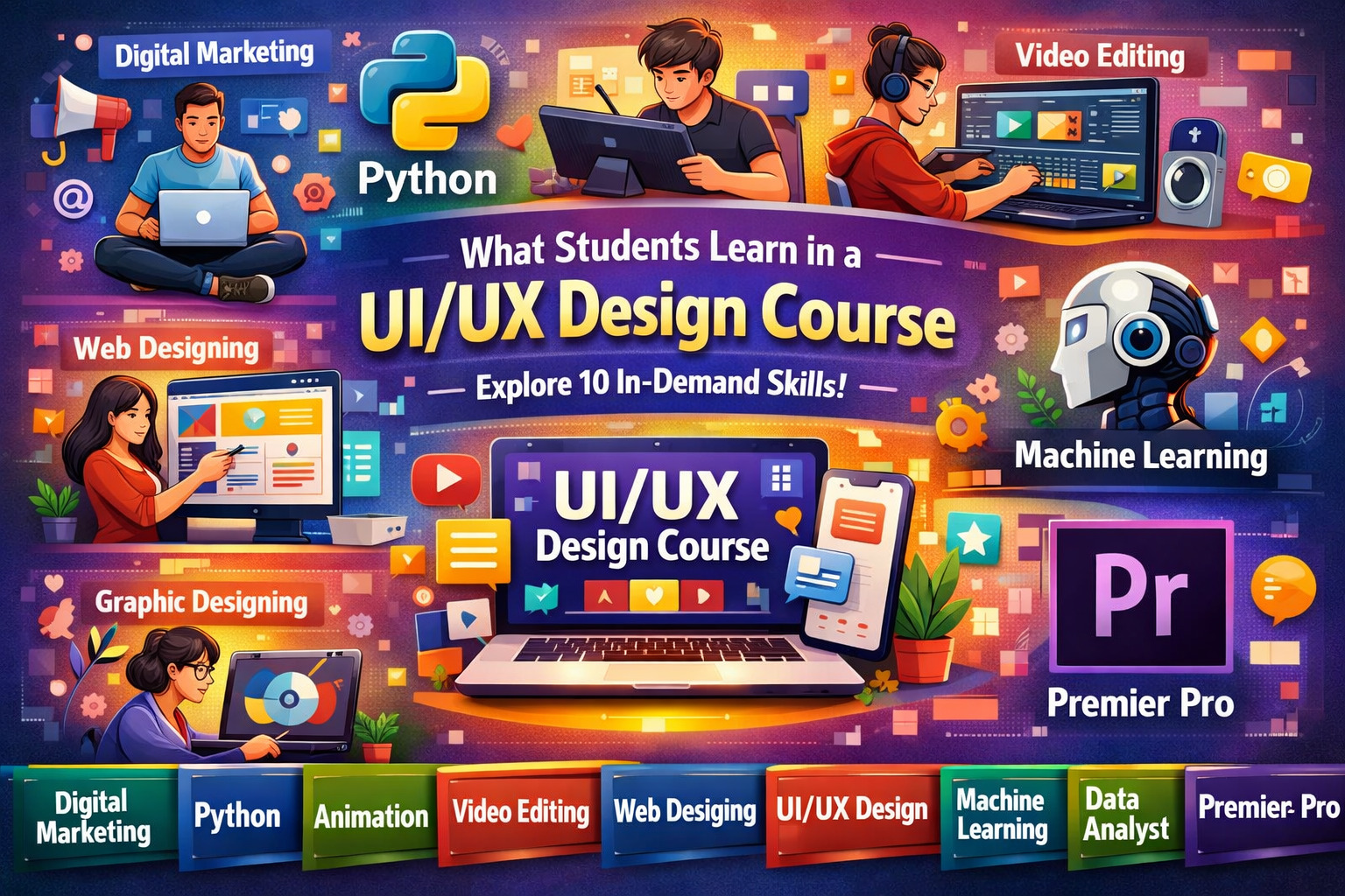 By combining UI/UX design with courses like Digital Marketing, Web Designing, Animation, and Graphic Designing, students can expand their career opportunities and stand out in the competitive market. If you are passionate about design and technology, this is the perfect time to start your journey.